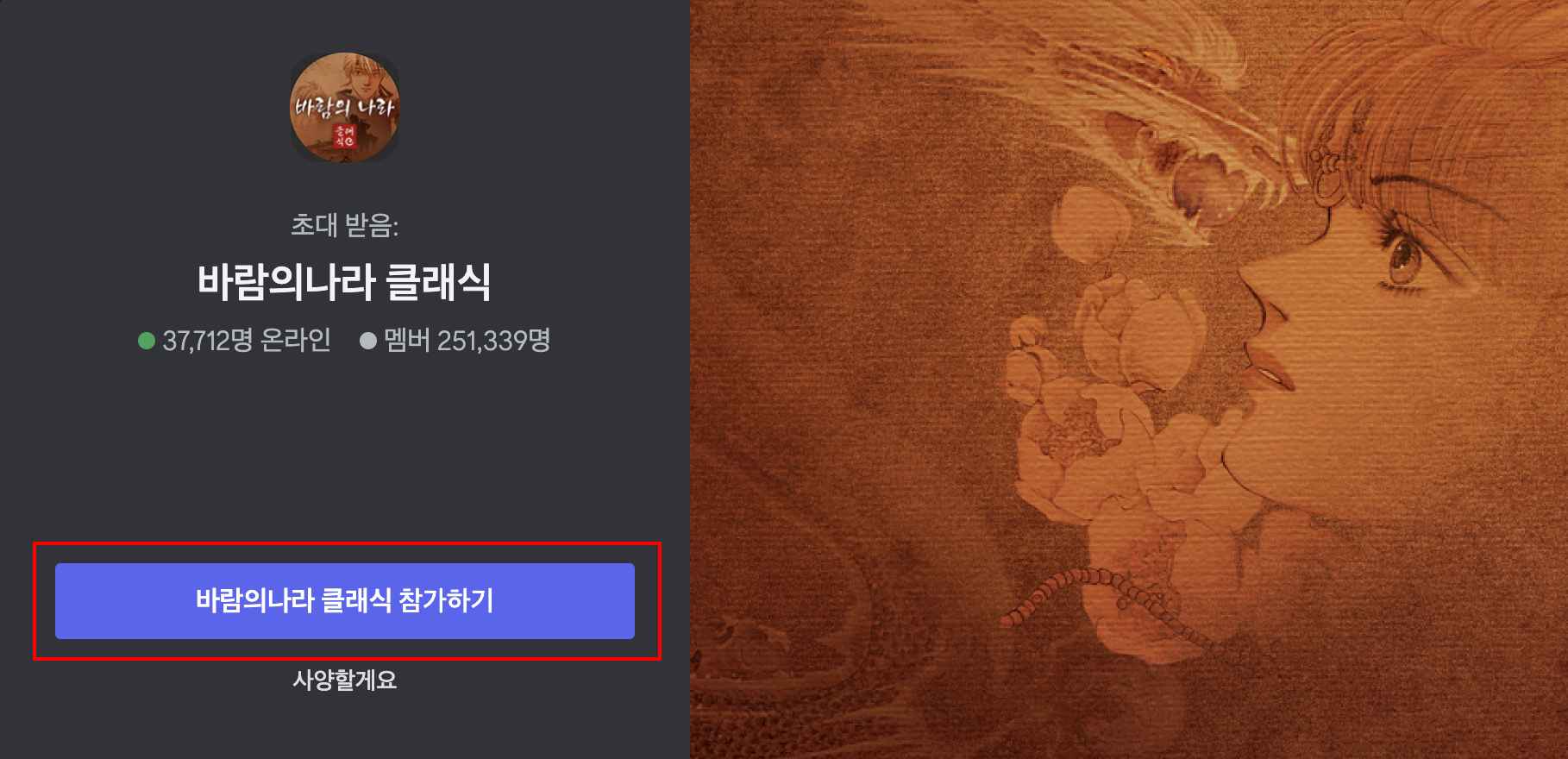 1. [링크] 클릭 > 바람의나라 클래식 참가하기 > 클릭